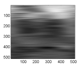 Next I removed 99% of all spectral coefficients from 1D array and restored the picture using only 1% of remaining coefficients. In case of line by line scanning the following picture was restored: